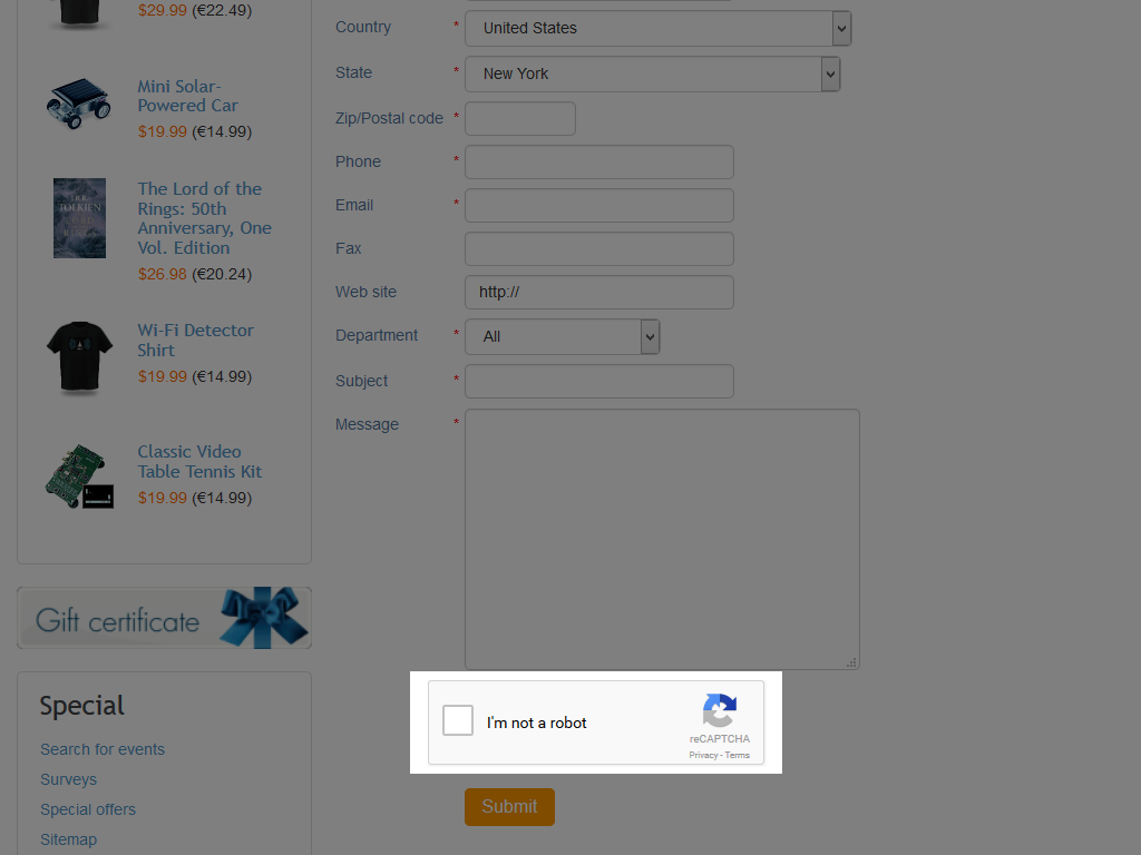 The add-on can be configured to displaying reCaptcha widget on the following pages: