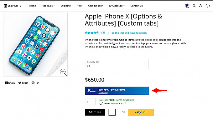 Pay in 4 and PayPal Credit* by PayPal is one of the benefits that goes with PayPal Checkout at no additional cost to you, so you can start offering customer financing immediately. It allows you to enable the BNPL option in your X-Cart based online store to help make more sales.